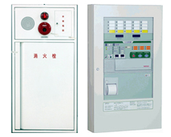 受信機 受信機は、煙感知器・熱感知器・炎感知器が感知した情報を受けて、建物内の消火設備の稼動を促す司令塔です。 受信機はP型・R型があります。 P型は小規模の建物、R型は大規模の建物に適しています。